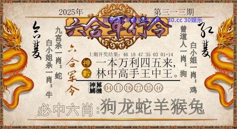 | 308期:平特一尾【44】→开:龙14准 |